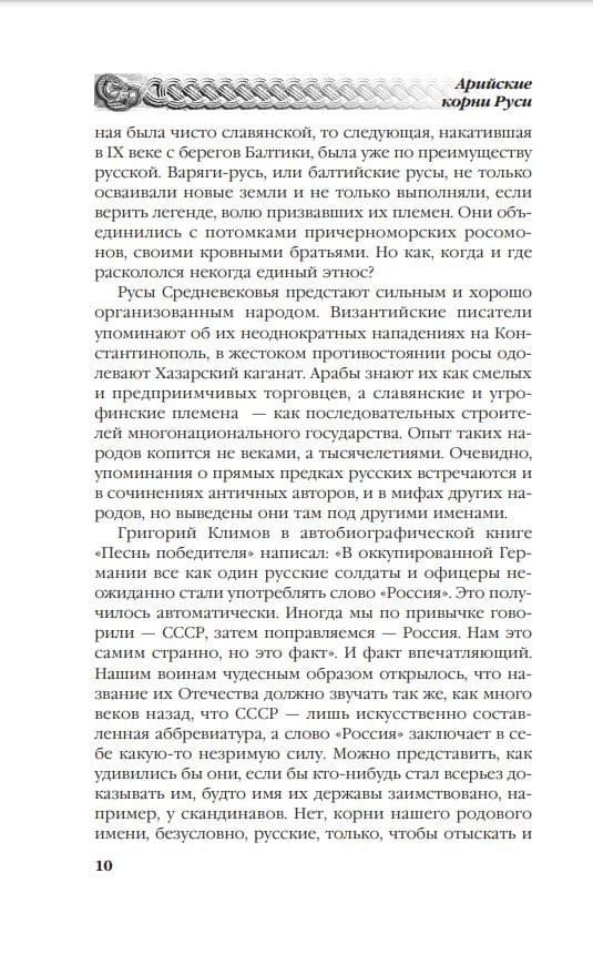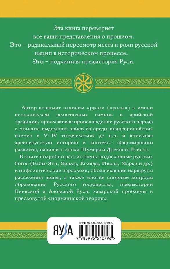 Эта книга перевернет все ваши представления о прошлом. Это — радикальный пересмотр места и роли русской нации в историческом процессе. Это — подлинная предыстория Руси. Автор возводит этноним «русы» («росы») к имени исполнителей религиозных гимнов в арийской традиции, прослеживая происхождение русского народа с момента выделения ариев из среды индоевропейских племен в V—IV тысячелетиях до н.э. и вписывая древнерусскую историю в контекст общемирового развития, начиная с эпохи Шумера и Древнего Египта.