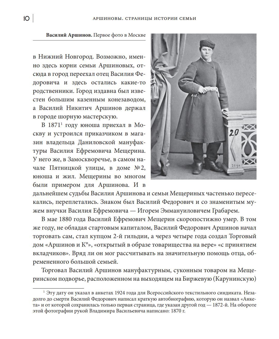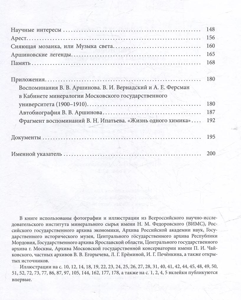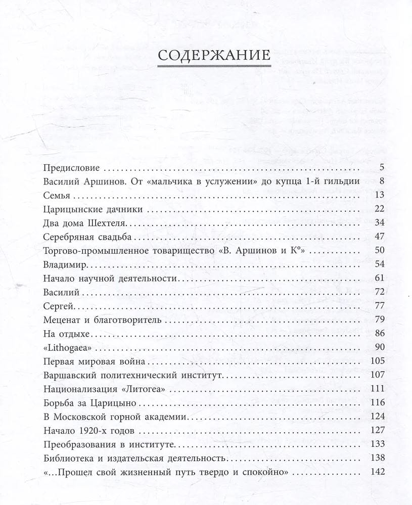 В книге рассказывается история семьи Аршиновых — крупных меценатов и благотворителей, способствовавших развитию специального образования и науки в императорской России и Советском Союзе. На основании архивных изысканий авторами впервые прослежена судьба членов семьи Аршиновых с конца XIX до середины XX века. Показан вклад в создание Аршиновского парка и организацию первого частного научного Петрографического института «Литогеа», начавшего изучение отечественных природных богатств.