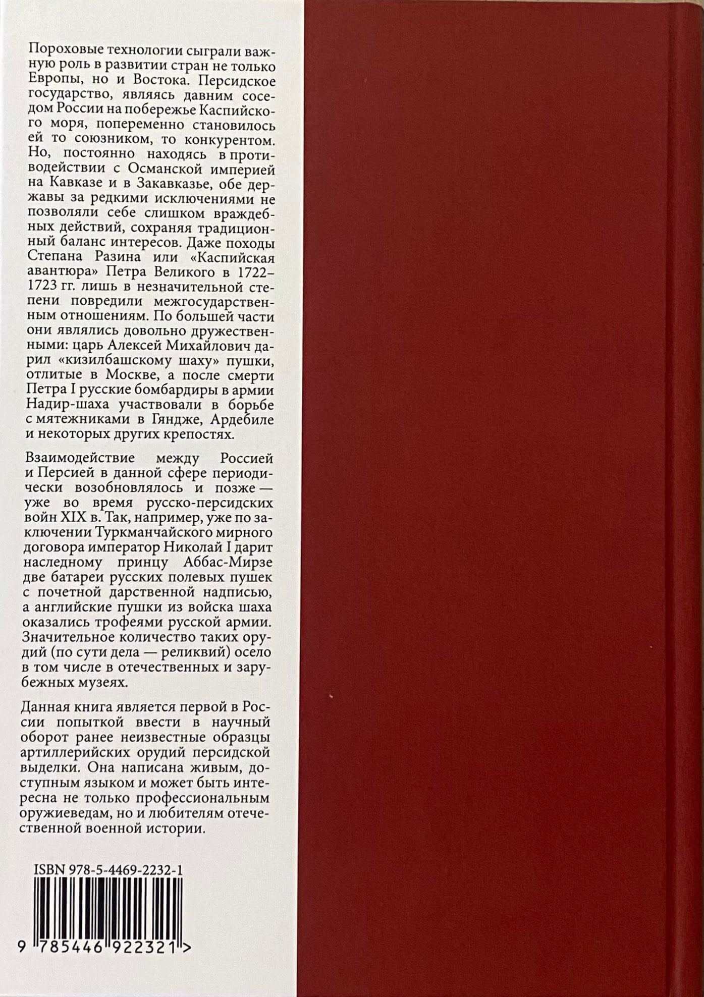 Данная книга является первой в России попыткой ввести в научный оборот ранее неизвестные образцы артиллерийских орудий персидской выделки. Она написана живым, доступным языком и может быть интересна не только профессиональным оружиеведам, но и любителям отечественной военной истории.