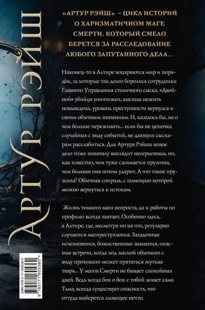 Наконец-то в Алтире воцаряются мир и порядок, за которые так долго боролись сотрудники Главного Управления столичного сыска. «Двойной» убийца уничтожен, высшая нежить повыведена, уровень преступности вернулся к своим обычным значениям. И, казалось бы, не о чем больше переживать… если бы не цепочка случайных с виду событий, не дающих сыскарям расслабиться. Для Артура Рэйша новое дело тоже поначалу выглядит несерьезным, но, как известно, чем туже сжимается пружина, тем больнее она потом ударит. А что такое пружина? Обычная спираль, с помощью которой можно вернуться к истокам. Жизнь темного мага непроста, да и работы по профилю всегда хватает. Особенно здесь, в Алтире, где, несмотря ни на что, регулярно случаются магпреступления. Загадочные исчезновения, божественные знамения, опасные встречи, когда под маской обычного с виду прохожего может прятаться жуткая тварь… У магов Смерти не бывает спокойных дней. Ведь когда бок о бок с тобой живет сама Тьма, всегда существует опасность, что оттуда выберется зловещее нечто.