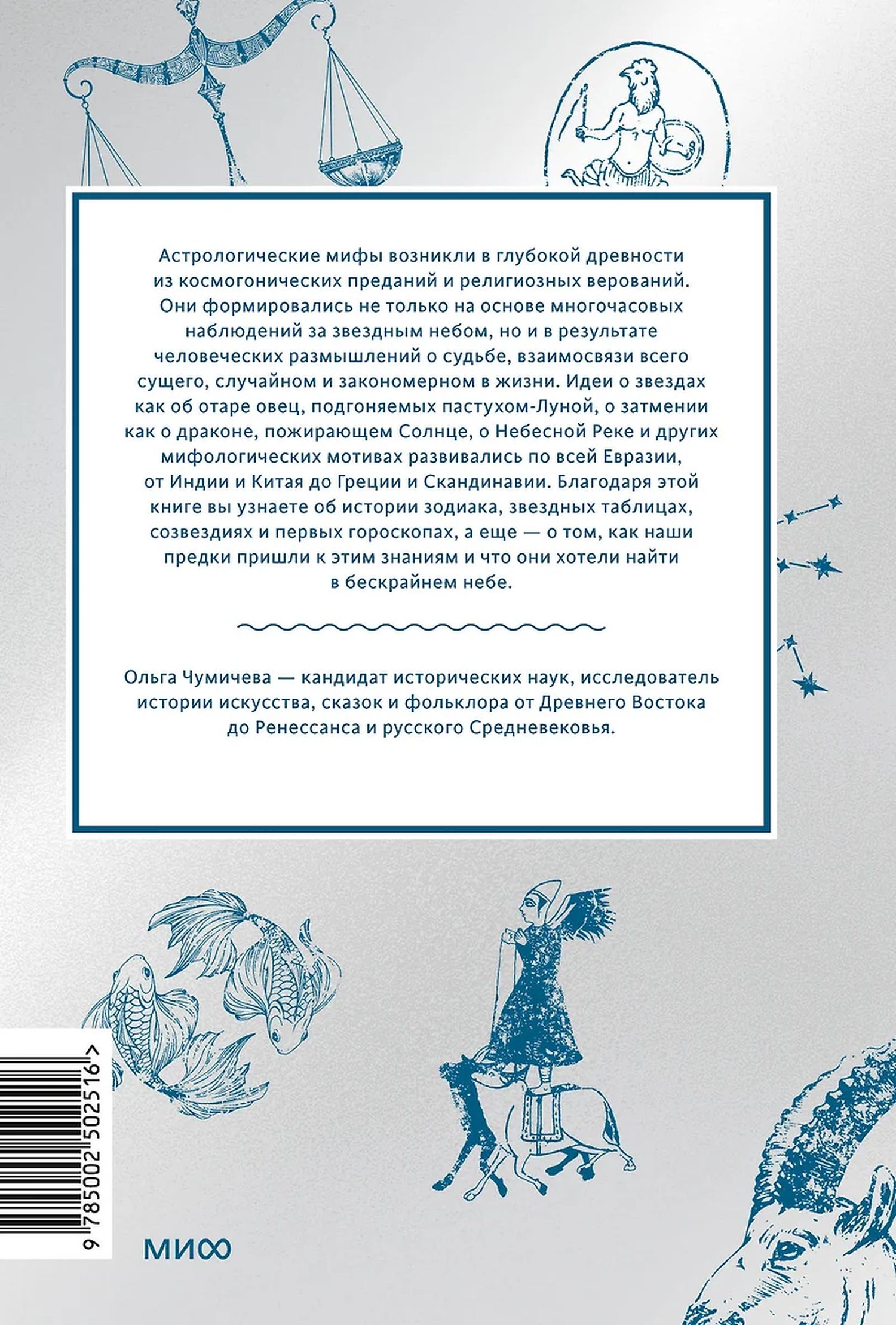 Астрологические мифы возникли в глубокой древности из космогонических преданий и религиозных верований. Они формировались не только на основе многочасовых наблюдений за звездным небом, но и в результате человеческих размышлений о судьбе, взаимосвязи всего сущего, случайном и закономерном в жизни. Идеи о звездах как об отаре овец, подгоняемых пастухом-Луной, о затмении как драконе, пожирающем Солнце, о Небесной Реке и других мифологических мотивах развивались по всей Евразии, от Индии и Китая до Греции и Скандинавии. Благодаря этой книге вы узнаете об истории зодиака, звездных таблицах, созвездиях и первых гороскопах, а еще — о том, как наши предки пришли к этим знаниям и что они хотели найти в бескрайнем небе.