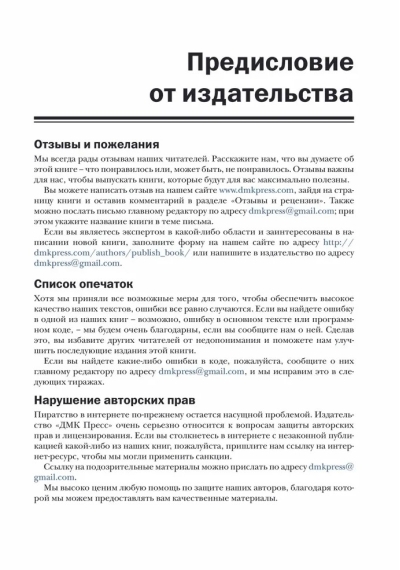 - тесты для самооценки, контрольные вопросы и упражнения – читатели могут оценить уровень своих знаний при помощи вопросов и заданий, размещенных в конце каждой главы.
