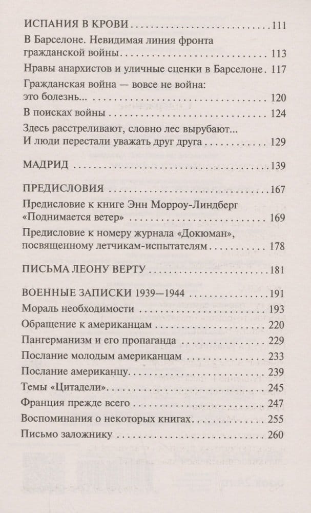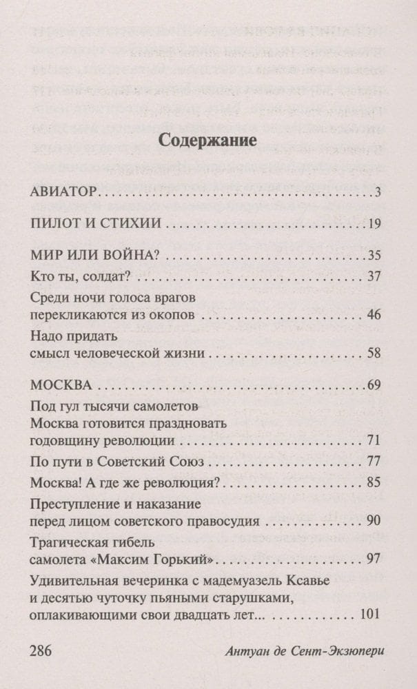 В сборнике вошли разнообразные работы Экзюпери: проза, публицистика, военные записки и радиообращения.  Рассказ «Авиатор» о капризной фортуне, очерк «Пилот и стихии» о борьбе летчика с непогодой, репортажи о поездках в постреволюционный Советский Союз и Испанию, объятую гражданской войной. Издание дополнили письма Леону Верту, верному другу и соратнику, которому «Тонио» посвятил «Маленького принца».