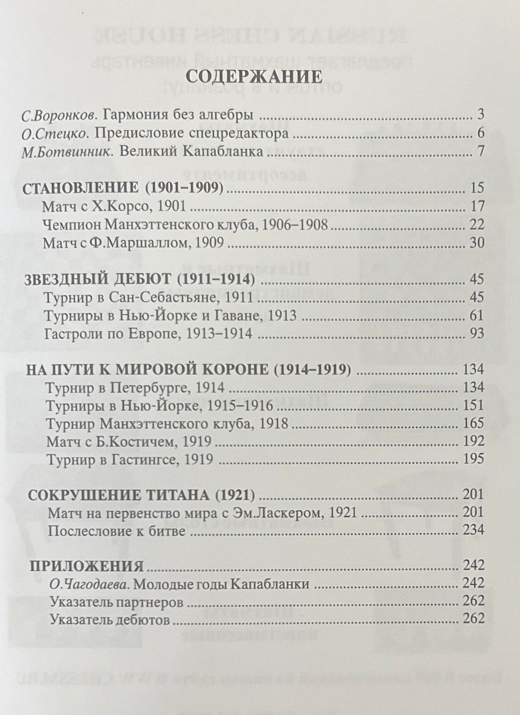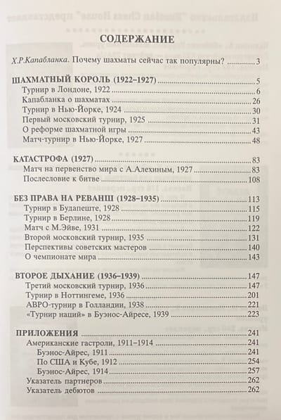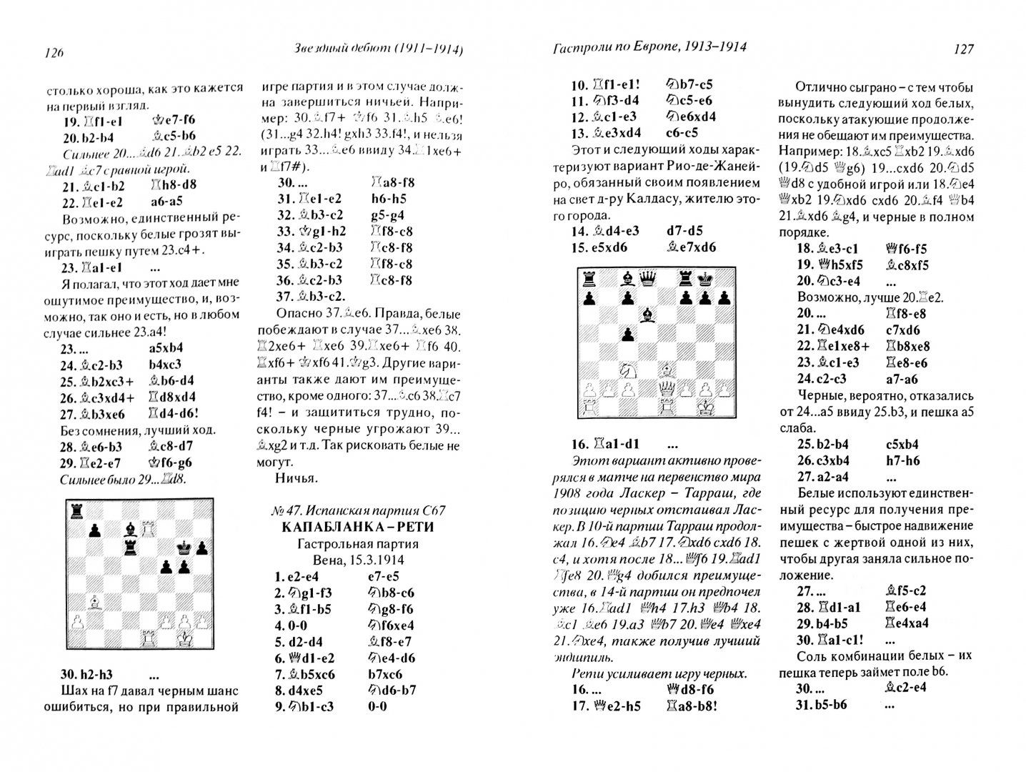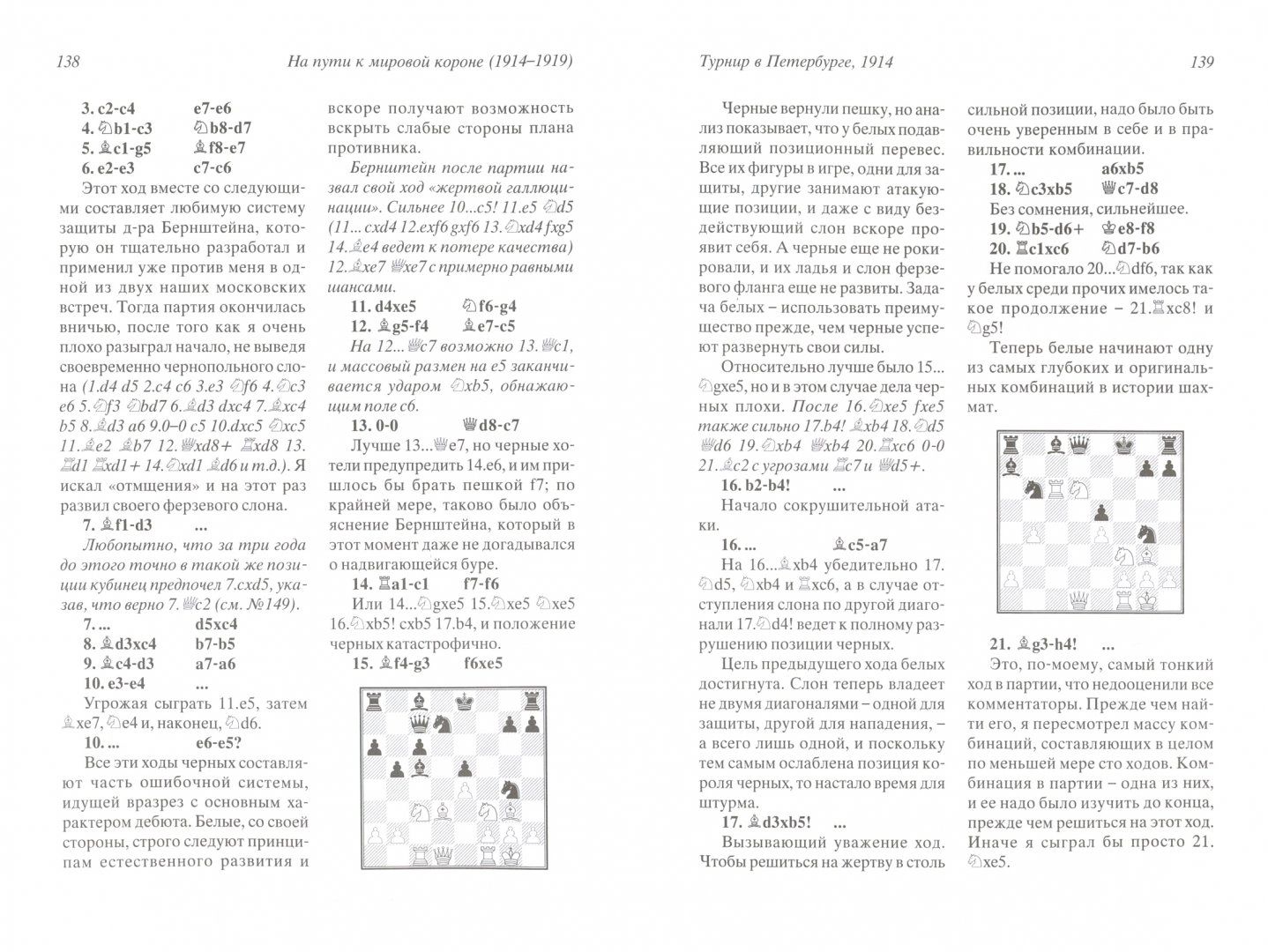 Первый том охватывает период с 1901 по 1921 год, включая матч с Маршаллом, турниры в Сан-Себастьяне и Петербурге, а также матч на первенство мира с Ласкером. Второй том охватывает период с 1922 по 1939 год, включая матч на первенство мира с Алехиным, а также турниры в Лондоне, Нью-Йорке, Москве и Ноттингеме.
