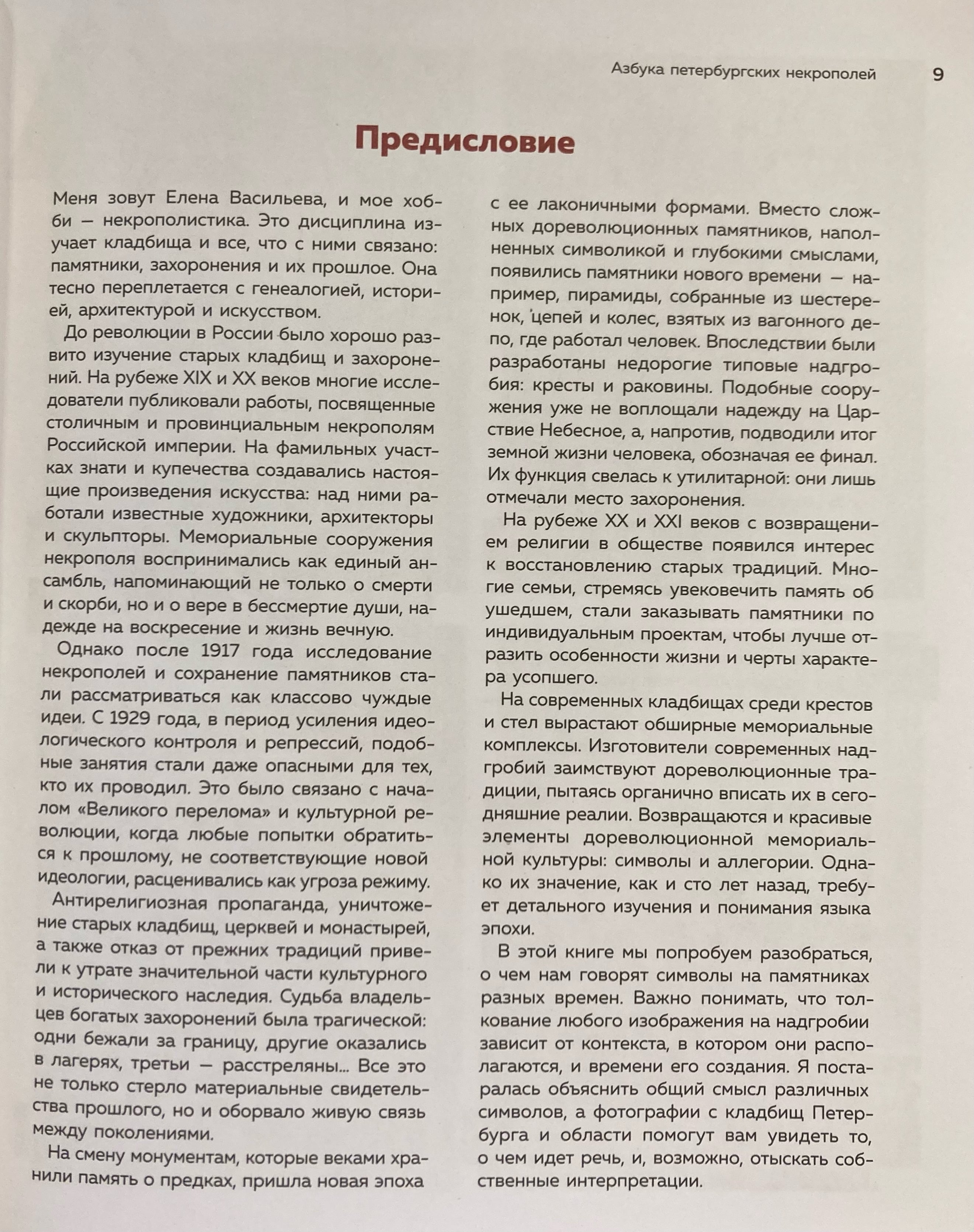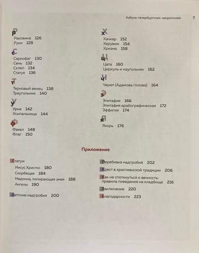 Книга «Азбука петербургских некрополей. Корабли, черепа, ангелы» — это попытка разобраться в символике некрополей разных эпох: дореволюционных, советских и современных. Ведь надгробные памятники отражают не только судьбы отдельных людей, но и культурные, духовные и исторические традиции общества. Изучая их символику, мы восстанавливаем связь с прошлыми поколениями и лучше понимаем, как менялись представления о смерти и памяти. Некрополистика помогает увидеть в кладбищах не только места захоронений, но и своеобразные исторические хроники, сохранившие дух времени.