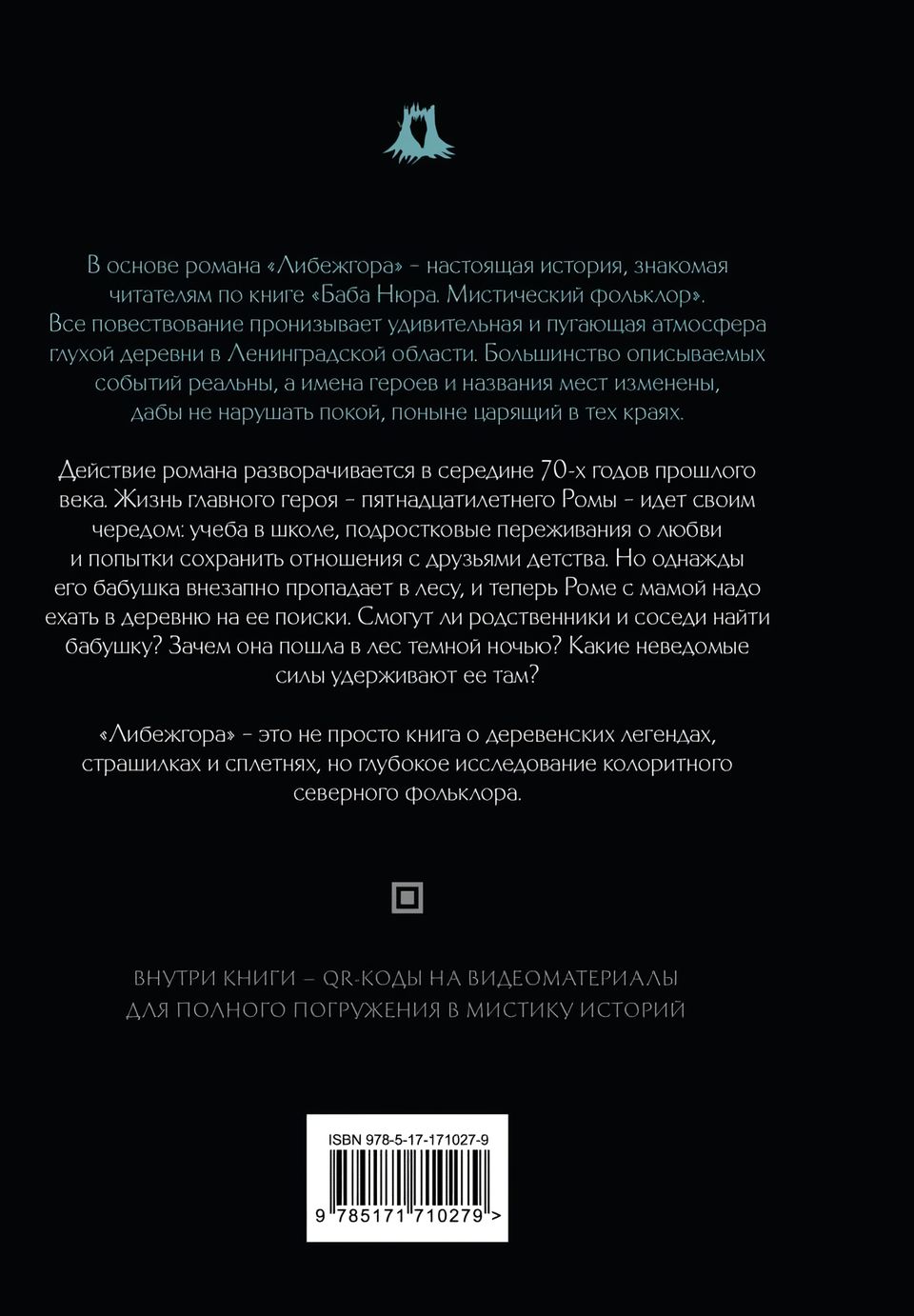 В основе романа «Либежгора» — настоящая история, знакомая читателям по книге «Баба Нюра. Мистический фольклор». Все повествование пронизывает удивительная и пугающая атмосфера глухой деревни в Ленинградской области. Большинство описываемых событий реальны, а имена героев и названия мест изменены, дабы не нарушать покой, поныне царящий в тех краях.