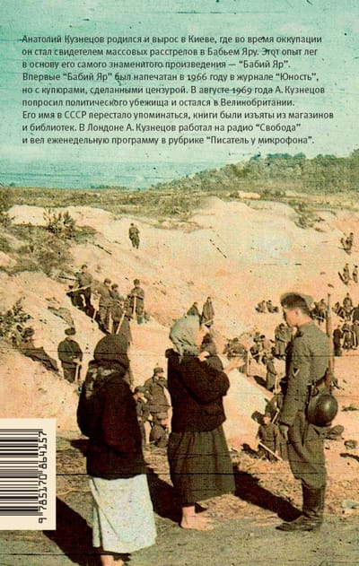Эта книга - полная авторская версия знаменитого документального романа «Бабий Яр» об уничтожении еврейского населения Киева осенью 1941 года. Анатолий Кузнецов, тогда подросток, сам был свидетелем расстрелов киевских евреев, мно¬го общался с людьми, пережившими катастрофу, собирал воспоминания других современников и очевидцев. Впервые его роман был опубликован в журнале «Юность» в 1966 году, и даже тогда, несмотря на многочисленные и грубые цензурные сокращения, произвел эффект разорвавшейся бомбы - так до Кузнецова про Холокост не осмеливался писать никто. Однако путь подлинной истории Бабьего Яра к читателю оказался долгим и трудным. В 1969 году Анатолий Кузнецов тайно вывез полную версию романа в Англию, где попросил политического убежища. Через год «Бабий Яр» был опубликован на Западе в авторской редакции, однако российский читатель смог познакомиться с текстом без купюр лишь после перестройки.