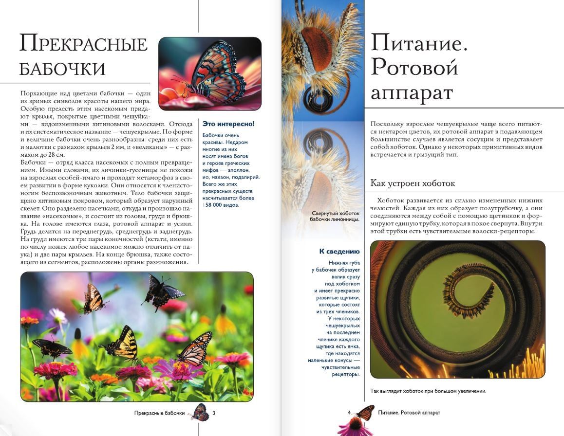 Узнать больше об этих насекомых вам поможет данная книга. Здесь приведено описание разных видов бабочек, в том числе их особенности и образ жизни, размеры, места обитания и даже охранный статус. А множество интересных фактов и уникальных фотографий, позволяющих рассмотреть этих насекомых в увеличенном виде во всех подробностях, превратят ваше знакомство с удивительным миром бабочек в увлекательное путешествие!