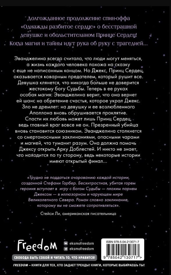 Страшное проклятие вынуждает Эванджелину вновь вступить в хрупкий союз с Принцем Сердец. Только в этот раз многое изменилось. Джекс — не единственный, кого Эванджелине стоит опасаться, но в то же время лишь ему она может доверять. Чтобы снять чары, Эванджелине и Джексу придется вновь встретиться со старыми друзьями, столкнуться с новыми врагами и магией, туманящей разум. Привыкшая всегда доверять своему сердцу, отныне Эванджелина боится, что больше не может этого сделать…