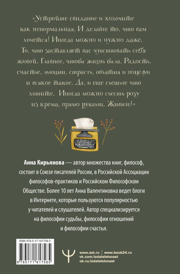 Вашим волшебным светлячком станет эта книга. В ней мудрые новеллы философа, автора множества книг Анны Кирьяновой. Они как волшебное зеркало, в котором вы узнаете себя самих, взглянете на жизнь со стороны и поймете, чего именно хотите. Они как глоток свежего воздуха, который вдохновил уже тысячи людей и заставил посмотреть на мир другими глазами. Они как маяк в бушующем океане наших чувств: поддерживают в трудные минуты и освещают путь.