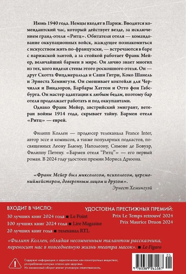 Большинство из них не знает, что Франк Мейер, австрийский эмигрант, ветеран войны 1914 года, скрывает тайну. Бармен отеля "Ритц" - еврей.