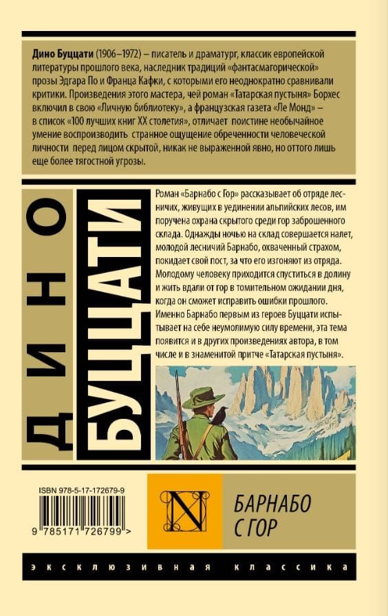Роман «Барнабо с Гор» рассказывает об отряде лесничих, живущих в уединении альпийских лесов, им поручена охрана скрытого среди гор заброшенного склада. Однажды ночью на склад совершается налет, молодой лесничий Барнабо, охваченный страхом, покидает свой пост, за что его изгоняют из отряда. Молодому человеку приходится спуститься в долину и жить вдали от гор в томительном ожидании дня, когда он сможет исправить ошибки прошлого.