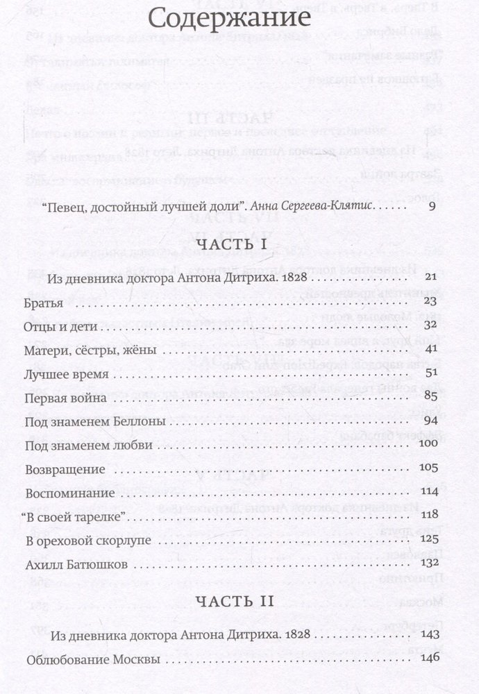 Писатель Глеб Шульпяков с любовью воссоздаёт обстоятельства личного, литературного и светского быта, в которых отпечатывается бытие поэта. На страницах книги оживают его друзья и близкие, любимые поэты и художники, а также литературные интриги и скандалы того времени. Вместе с Батюшковым читатель путешествует по Германии, Франции, Англии и Италии, проживает исторические события 1812 года, Битвы народов и взятия Парижа, свидетелем и участником которых он был.