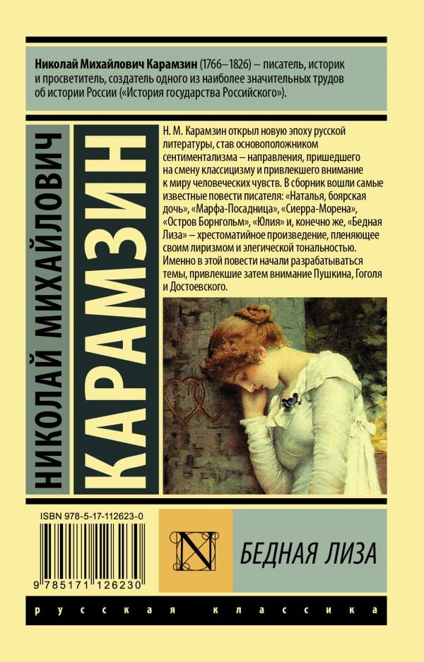 Н.М. Карамзин открыл новую эпоху русской литературы, став основоположником сентиментализма — направления, пришедшего на смену классицизму и привлекшего внимание к миру человеческих чувств. В сборник вошли самые известные повести писателя: «Наталья, боярская дочь», «Марфа-посадница», «Сиерра-Морена», «Остров Борн¬гольм», «Юлия» и, конечно же, «Бедная Лиза» — хрестоматийное произведение, пленяющее своим лиризмом и элегической тональностью. Именно в этой повести начали разрабатываться темы, привлекшие затем внимание Пушкина, Гоголя и Достоевского.