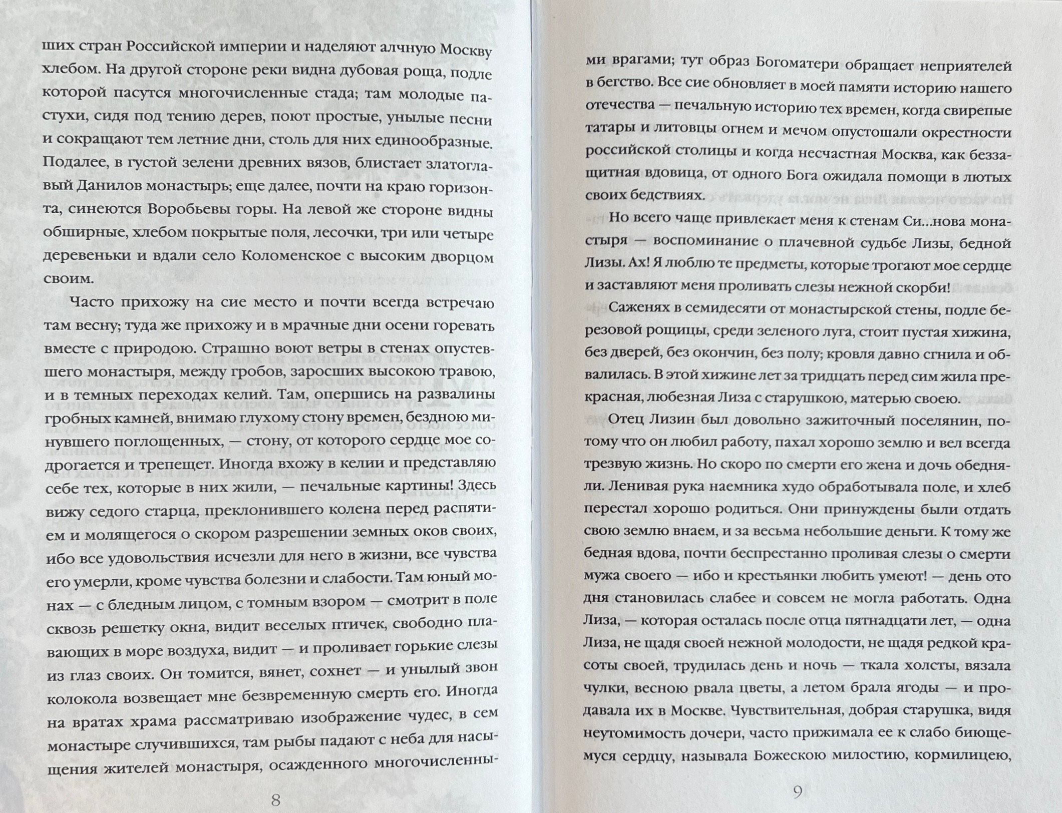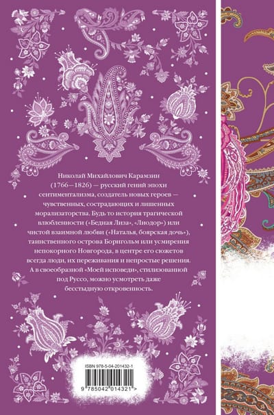 Николай Михайлович Карамзин (1766—1826) — русский гений эпохи сентиментализма, создатель новых героев — чувственных, сострадающих и лишенных морализаторства. Будь то история трагической влюбленности («Бедная Лиза», «Лиодор») или чистой взаимной любви («Наталья, боярская дочь»), таинственного острова Борнгольм или усмирения непокорного Новгорода, в центре его сюжетов всегда люди, их переживания и непростые решения. А в своеобразной «Моей исповеди», стилизованной под Руссо, можно усмотреть даже бесстыдную откровенность.