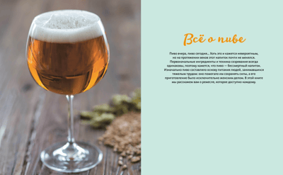 Эта книга — ваш верный навигатор по видам, сортам, ароматам пива, который научит вас отличать светлое пиво от белого, лагер от эля, стаут от пилс нера… Вы узнаете самое интересное из истории пенного напитка, познакомитесь с техниками приготовления, розлива и хранения пива в домашних условиях, с основным сырьем, компонентами, понятиями пивоварения, а также с рецептами блюд с использованием пива. Желаем удачи!