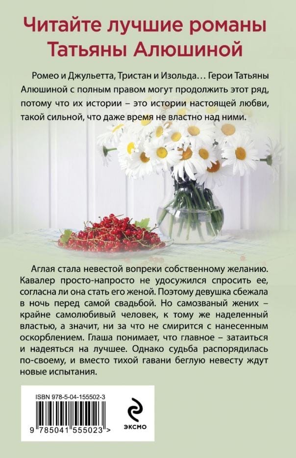 Романы Татьяны Алюшиной — это вдохновляющие истории о настоящей любви, творящейся здесь и сейчас, как будто у нас на глазах. Герои ее книг — простые люди. Кажется, что это мы сами на страницах романа: влюбляемся, ошибаемся и неустанно ищем счастья. Поэтому книги Татьяны Алюшиной завоевывают сердца и мгновенно становятся бестселлерами. Полюбите их и вы!