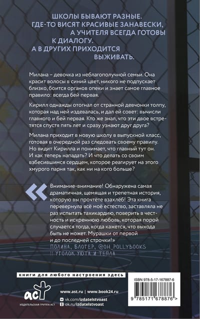Милана – девочка из неблагополучной семьи. Она красит волосы в синий цвет, никого не подпускает близко, боится органов опеки и знает самое главное правило: всегда бей первая.
