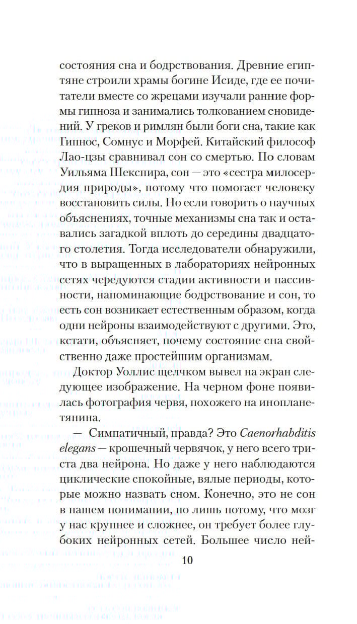 Действительно ли человеку жизненно необходим сон? Или это своего рода атавизм, унаследованный от доисторических предков? Видный психолог Рой Уоллис из университета в Беркли считает, что люди вполне могут обходиться без сна, и намерен доказать это на опыте, чтобы облагодетельствовать человечество и вписать свое имя в историю науки. Существует известная городская легенда, что в 1954 году в СССР провели эксперимент по лишению сна на заключенных, пообещав им свободу. Никто из подопытных не выжил… И в 2018 году профессор Уоллис получает разрешение провести аналогичный опыт на добровольцах. Что может пойти не так?