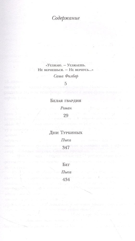 В этой книге собраны: роман «Белая гвардия», пьесы «Дни Турбиных» и «Бег», а предваряет их статья о трудных взаимоотношениях Михаила Булгакова с советским правительством и его театральных работах, подготовленная автором журнала «Эксмо» Сашей Филбар. Роман «Белая гвардия» рассказывает о Гражданской войне. Булгаков описывает реально происходившие события в Киеве в 1918 году, а у многих персонажей были существующие прототипы, поэтому роман имеет не только художественную, но и документальную ценность. Критика приняла его неоднозначно, советская власть и эмигрантские круги сочли его слишком лояльным противоположной по убеждениям стороне. Задумываясь как часть большой трилогии о годах Гражданской войны, «Белая гвардия» осталась единственной написанной частью, но послужила основой для пьесы «Дни Турбиных». Пьеса была написана по заказу МХАТа в 1925 году и годом позднее разрешена к постановке. Как и роман, она описывает события Гражданской войны и личную трагедию семьи Турбиных, происходившую на фоне слома эпох и крушения старой жизни. Пьеса «Бег» написана на основе воспоминаний второй жены Булгакова об эмиграции в период Гражданской войны и также описывает реальные события. При жизни автора пьеса не была поставлена, ее раскритиковал лично Сталин: ««Бег» в том виде, в каком он есть, представляет антисоветское явление». Впервые игралась на сцене в 1957 году.
