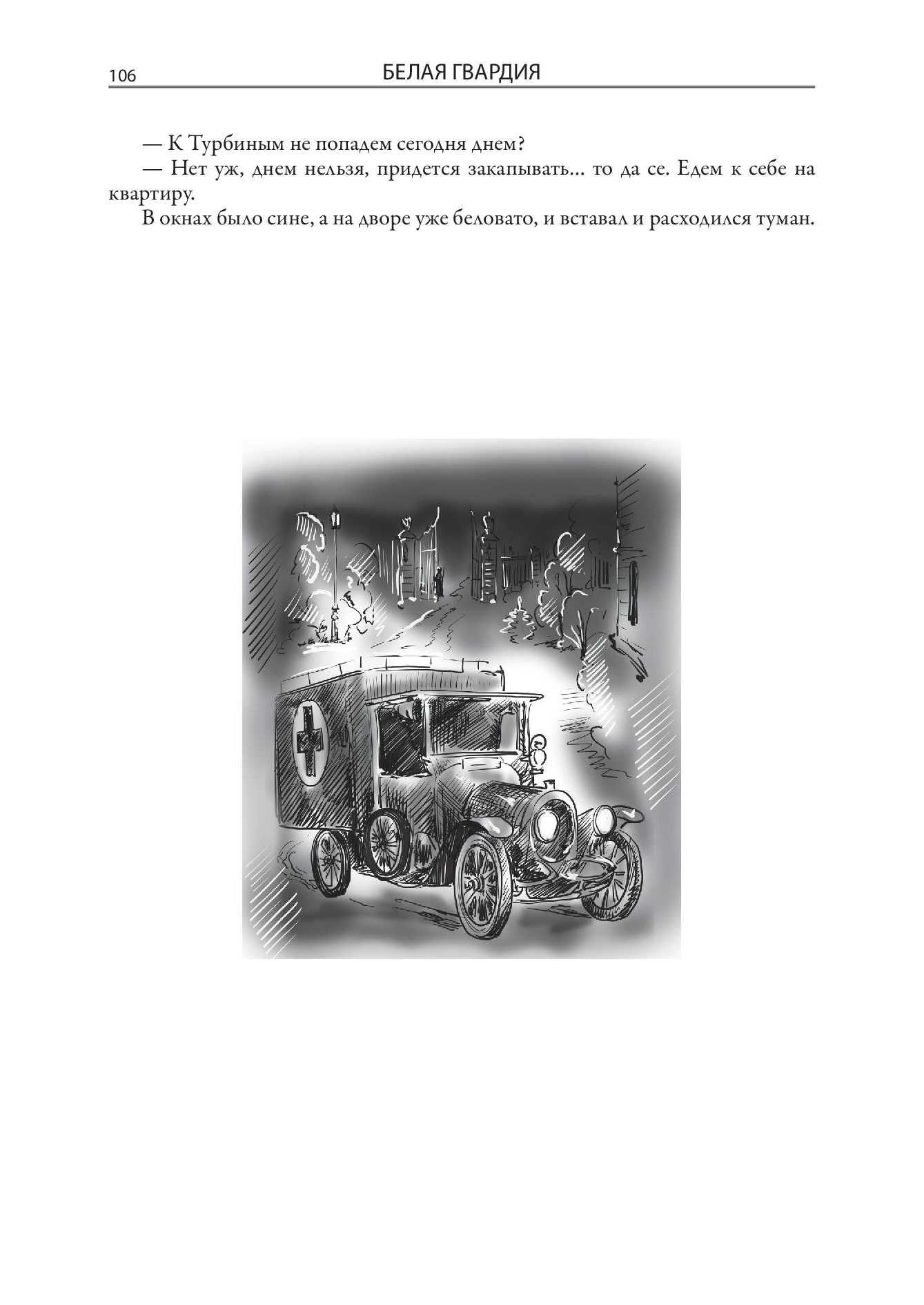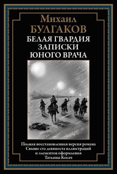 Помимо знаменитого романа «Белая гвардия» Михаила Афанасьевича Булгакова, который впервые печатается полностью, без сокращений, в книгу включен не менее известный цикл рассказов писателя «Записки юного врача», дополненный рассказами «Я убил», «Морфий» и «Необыкновенные приключения доктора». Тексты проиллюстрированы рисунками и буквицами современной художницы Татьяны Косач и снабжены комментариями литературоведа Лидии Яновской.В серии рассказов «Записки молодого врача» и в романе «Белая гвардия» М. А. Булгакова отражены многие эпизоды жизни писателя. Детство Михаил Афанасьевич провел в большой дружной интеллигентной семье в Киеве. Вихрь Гражданской войны подхватил и разметал ее в разные стороны. Драматические события того времени легли в основу романа «Белая гвардия». Булгаков окончил медицинский факультет Киевского университета. Потом была работа в небольшом селе Никольское Смоленской губернии, где молодого врача спасла от наркотической зависимости его супруга Татьяна Лаппа. Сложные случаи из своей медицинской практики Булгаков будет потом описывать в рассказах. Решение всерьез заняться литературой он принял во Владикавказе, работая военным врачом. Незадолго до прихода Красной армии Михаил Афанасьевич заболел тифом, слег и вынуждено остался в стране. Стремясь покинуть Россию, Булгаков вместе с супругой добрался до Батуми, но там произошла его судьбоносная встреча с Осипом Мандельштамом. Поэт убедил Михаила Афанасьевича ехать в Москву и именно там печатать свои произведения. В столице Булгаков начал писать фельетоны для различных газет и журналов, а в 1925 г. журнал «Россия» стал публиковать его роман «Белая гвардия». В том же году руководство МХАТа предложило Булгакову переделать роман для постановки на сцене, и вскоре состоялась премьера пьесы «Дни Турбиных». Булгаков не скрывал своего противоречивого отношения к революции. Сталин в своих выступлениях не раз говорил, что «Дни Турбиных» - произведение антисоветское, однако он же велел вернуть пьесу на сцену, когда ее постановка была запрещена. Михаил Афанасьевич прожил всего сорок девять лет. После его кончины А. А. Фадеев написал, что это был «...человек, не обременивший себя ни в творчестве, ни в жизни политической ложью... Путь его был искренен, органичен, а если в накале своего пути (а иногда и потом) он не все видел так, как оно было на самом деле, то в этом нет ничего удивительного: хуже было бы, если бы он фальшивил...».Книга проиллюстрирована рисунками современной петербургской художницы Татьяны Косач. Она окончила исторический факультет Санкт-Петербургского государственного университета и является специалистом по искусству Средневековья. Ее иконописные и графические работы можно встретить в частных коллекциях любителей живописи в России, США, Италии и Франции. В серии БМЛ ее иллюстрации украшают романы «Американская трагедия», «Финансист», «Титан» «Стоик» Теодора Драйзера, «Доктор Живаго» Бориса Пастернака и «Рассказы» Абруаза Бирса.