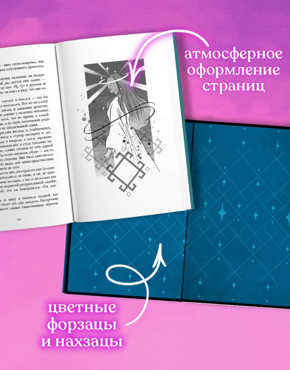 «Белые искры снега. Часть 2» — удивительный сплав городского фэнтези, мистики и романтики. Каждая страница книги окутана зимней магией, и прекрасное оформление Карины Яшагиной подчеркивает эту холодную мистическую атмосферу. Роскошная обложка с портретом главного героя, стилизованные страницы, цветные обрезы, иллюстрации на форзаце и нахзаце — настоящая гордость для коллекционера и восхитительный подарок.