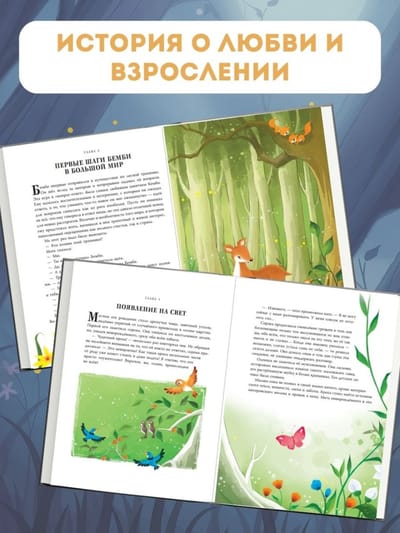 Это сказка о взрослении олененка, чувства и эмоции которого будут понятны малышам, ведь в них так легко увидеть свои. Бемби также проходит через трудности и страхи и учится быть сильным несмотря ни на что.