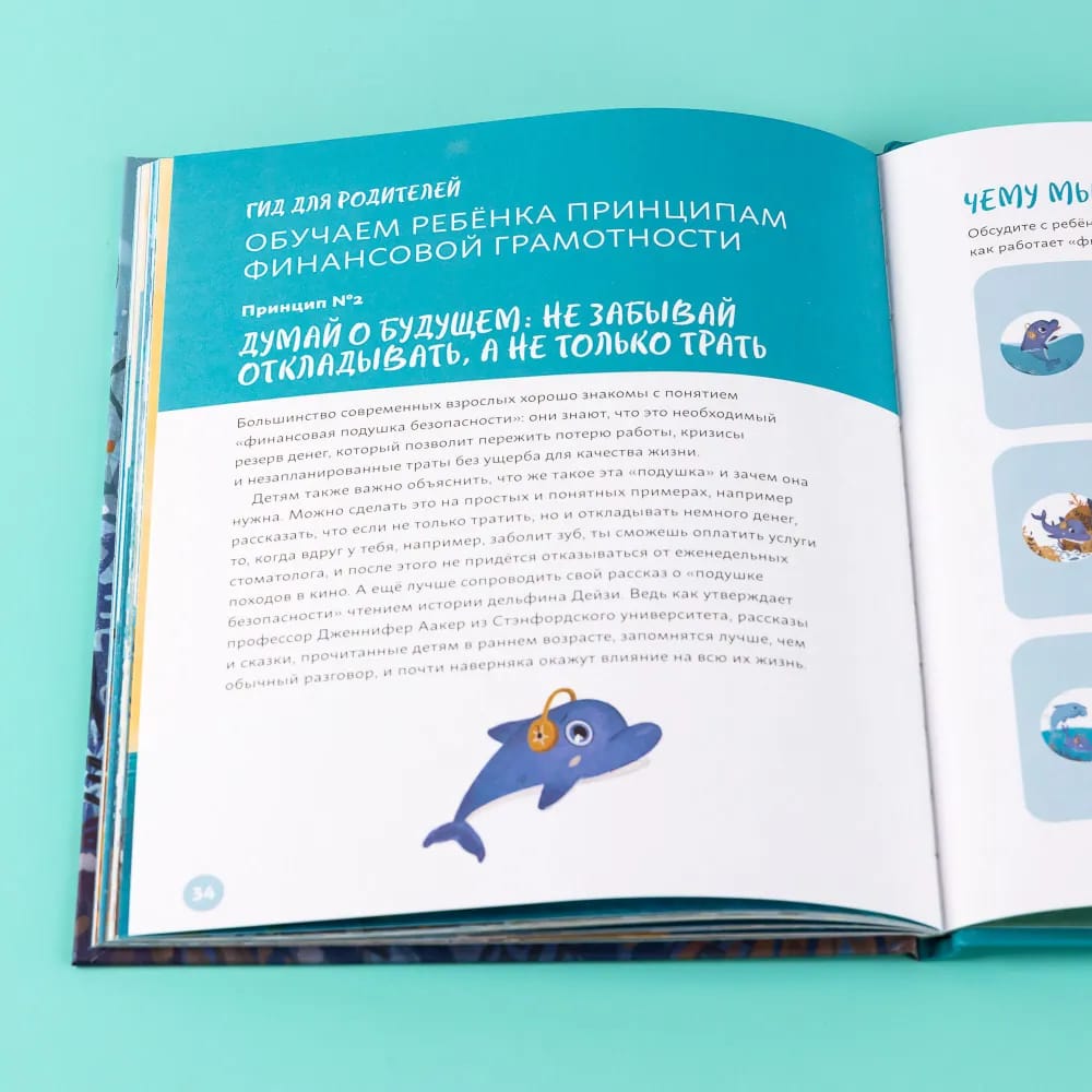 С помощью истории дельфинёнка Дейзи дети познакомятся с таким понятием, как «подушка безопасности»: часть своих доходов обязательно нужно откладывать на случай непредвиденных обстоятельств. А урок, извлеченный из забавной истории в стихах, запомнится лучше, чем обычные нравоучения.