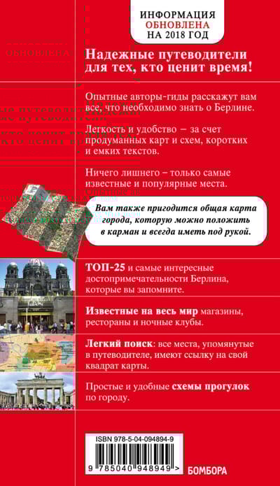 Перед вами экспресс-гид по Берлину. В нем содержится краткая информация о столице, советы, как лучше провести первый и второй дни, и 25 главных достопримечательностей. Также в книге вы найдете описания самых интересных мест каждого района города. Гуляйте, знакомьтесь, восхищайтесь прекрасным Берлином и получайте нужную информацию в режиме нон-стоп!