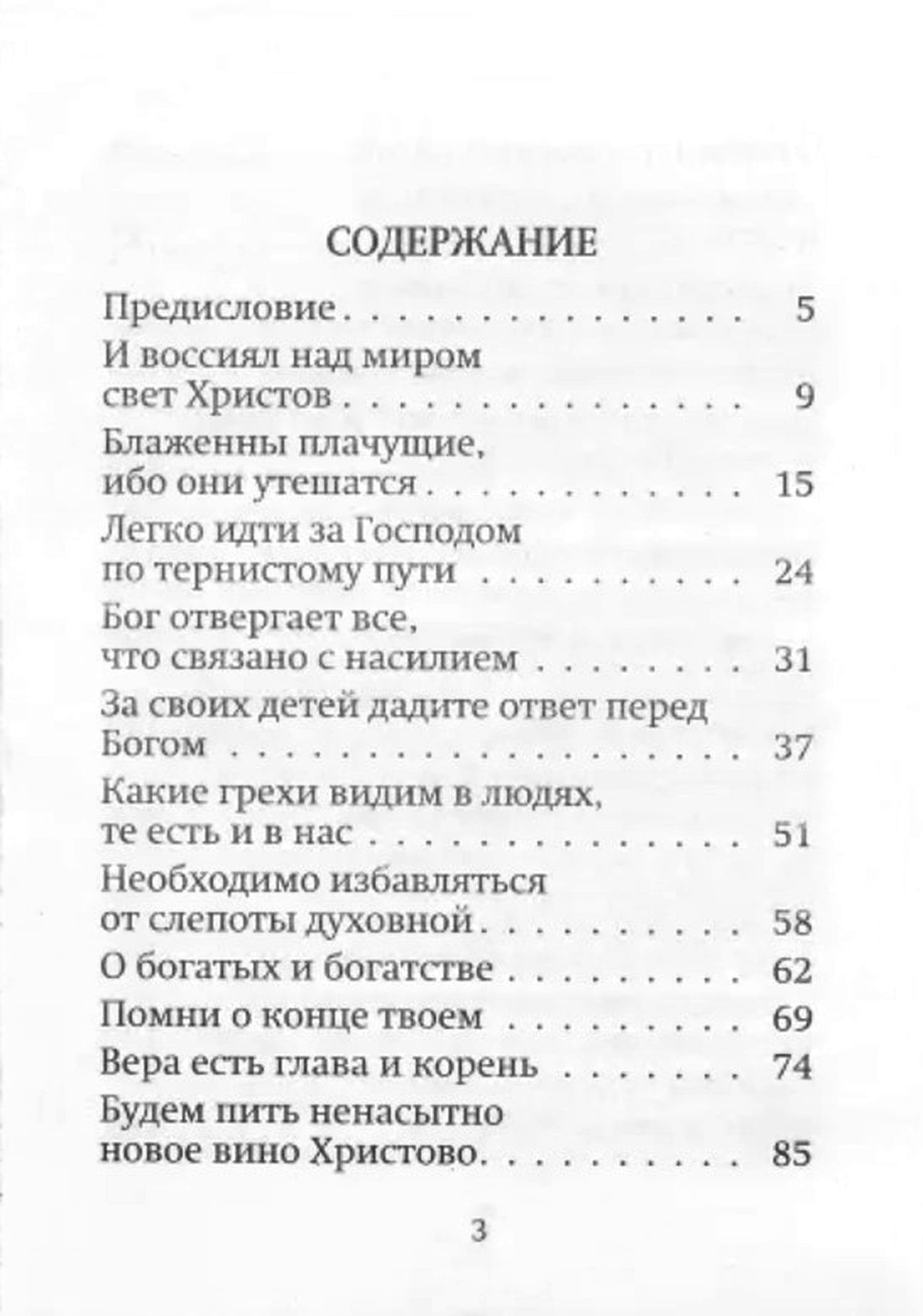 В сборник вошли проповеди архиепископа Луки (Войно-Ясенецкого), произнесенные им в период пребывания на Тамбовской и Симферопольской кафедрах, с 1944 по 1961 гг. В них ярко раскрывается его талант в области пастырского богословия и гомилетики, благоговейное восприятие святителем содержания Священного Писания.