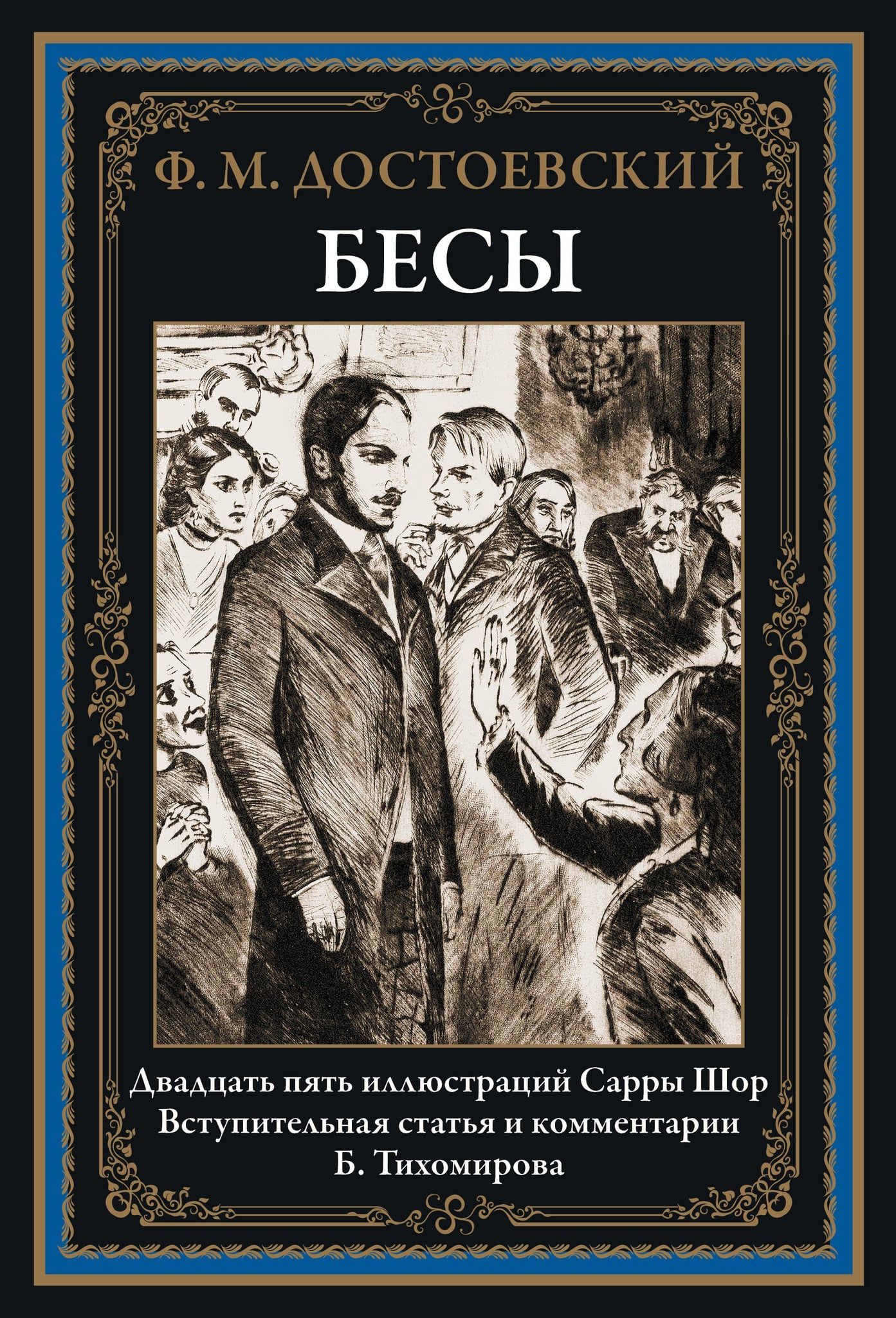 Роман «Бесы» занимает особое место в творчестве Ф. М. Достоевского. Он не только наряду с «Преступлением и наказанием», «Идиотом», «Подростком» и «Братьями Карамазовыми» входит в так называемое «великое пятикнижие» писателя, но и в этом ряду выделяются особо. Этот роман, посвященный проблематике противоборства тьмы и света, зла и добра, был задуман Достоевским в 1870 г. после убийства в Москве террористической группой Сергея Нечаева одного из участников своей подпольной организации — Ивана Иванова, намеревавшегося порвать с нею. Писатель прозорливо почувствовал, что явления такого рода являются следствием целого комплекса проблем, столетиями копившихся в стране. Однако «Бесы» произведение не только о Нечаеве и нечаевщине; но и о возможности и необходимости человеческой души преодолеть все искусы и сомнения, пройти все испытания и найти спасительный путь, следуя которому можно одержать победу над торжествующей в мире бесовщиной — злом, ложью и прочими пороками. Вместе с тем «Бесы» — это масштабное литературное полотно, изображающее в оригинальной повествовательной форме жизнь провинциального города во время роковых событий. В данном издании текст романа сопровожден обширными комментариями, а также вступительной статьей известного отечественного литературоведа доктора филологических наук Б. Н. Тихомирова «Репетиция русского апокалипсиса», которая помогает лучше разобраться в художественной концепции романа. Издание сопровождают выполненные в середине 1930-х гг. иллюстрации выпускницы Петербургской Академии Художеств Сарры Шор (1897–1981). Будущая художница появилась на свет в небольшом уездном городке Волынской губернии за три года до начала XX века. Казалось, ей была уготована обычная судьба сотен тысяч еврейских девушек, живущих в российской глубинке. Однако у Сарры проснулась тяга к рисованию. Сначала Сарра поступила в Киевское художественное училище, где впервые познакомилась с европейским авангардом, а потом перебралась в Санкт-Петербург. Со временем она примкнула к новому художественному объединению — «Культур-Лиге»; входившие в нее еврейские художники стремились продвигать в жизнь новое искусство, сочетая его с национальными мотивами. В этом русле развивалось и творчество Сарры Шор. Она рисовала эскизы к театральным постановкам, а потом увлеклась книжной графикой. Книги с рисунками С. Шор печатали ведущие издательства Москвы и Ленинграда. Эти издания неоднократно демонстрировались на международных выставках книжного искусства, в том числе и за рубежом: в Кёльне, Амстердаме, Нью-Йорке, Берлине и Лондоне. Примером таких работ Шор являются и ее иллюстрации к «Бесам» Достоевского. Роман «Бесы» (1871–1872) является одним из важнейших в творческом наследии Ф. М. Достоевского. Толчком к его созданию послужило первое в истории революционного движения в России политическое убийство, совершенное группой революционеров-террористов во главе с Сергеем Нечаевым. Глубина философско-религиозной проблематики, острота постановки социальных и нравственных вопросов обусловили горячие споры, которые ведутся вокруг этого произведения со времени его выхода в свет. Сложную жанровую природу, сущность авторского пафоса «Бесов» традиционно определяют в терминах «роман-трагедия» и «роман-предупреждение». Издание сопровожде