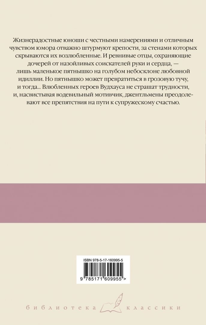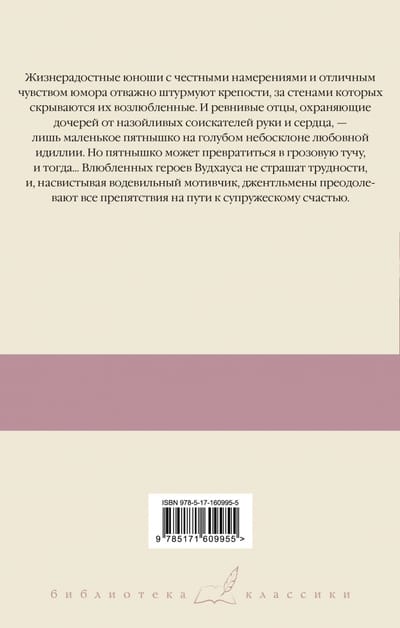 Жизнерадостные юноши с честными намерениями и отличным чувством юмора отважно штурмуют крепости, за стенами которых скрываются их возлюбленные. И ревнивые отцы, охраняющие дочерей от назойливых соискателей руки и сердца, - лишь маленькое пятнышко на голубом небосклоне любовной идиллии. Но пятнышко может превратиться в грозовую тучу, и тогда… Влюбленных героев Вудхауса не страшат трудности, и, насвистывая водевильный мотивчик, джентльмены преодолевают все препятствия на пути к супружескому счастью.