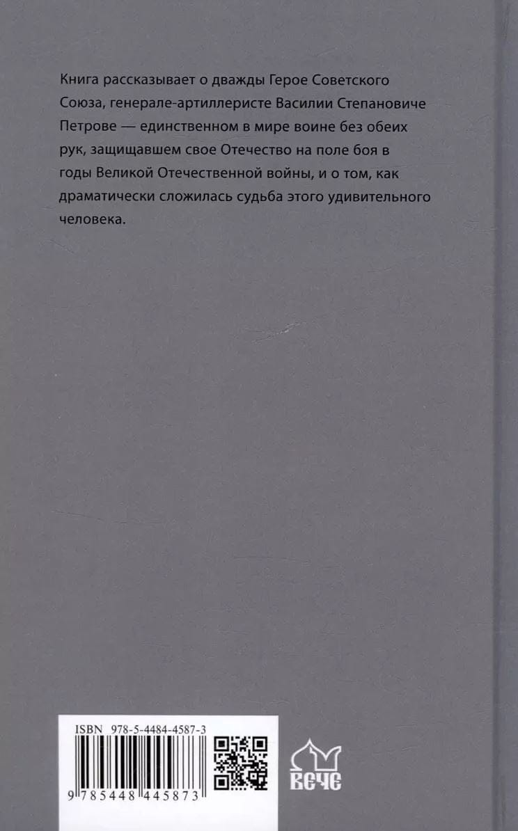 Книга рассказывает о дважды Герое Советского Союза, генерале-артиллеристе Василии Степановиче Петрове - единственном в мире воине без обеих рук, защищавшем свое Отечество на поле боя в годы Великой Отечественной войны, и о том, как драматически сложилась судьба этого удивительного человека.