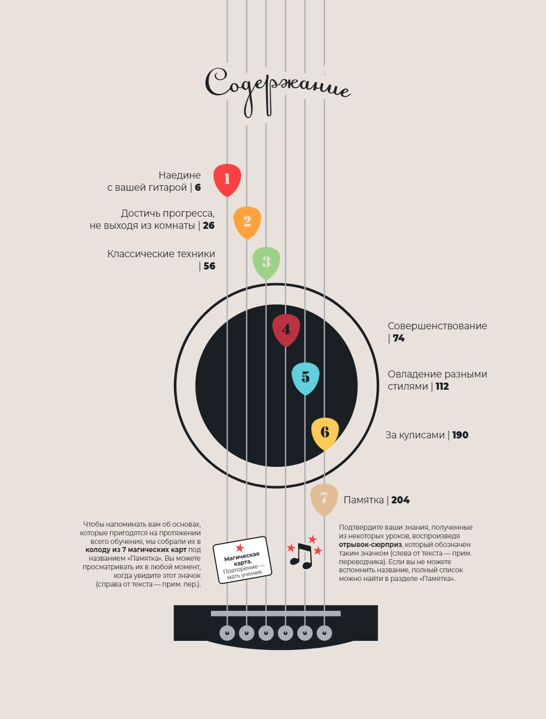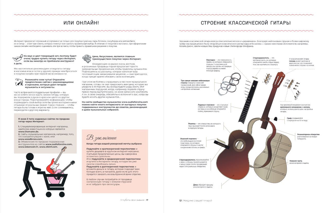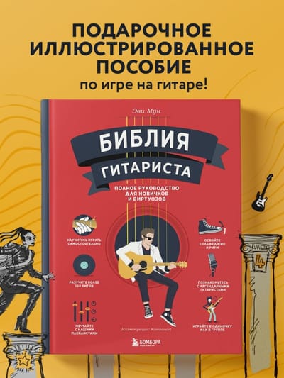 Автор, как опытный педагог, пошагово и на понятных примерах рассказывает обо всем: как выбрать гитару, как сделать первые шаги в освоении нового инструмента и как стать настоящим музыкальным виртуозом. А иллюстрации художника Kambanart позволят увидеть каждый из процессов на примере понятных схем и ярких рисунков.
