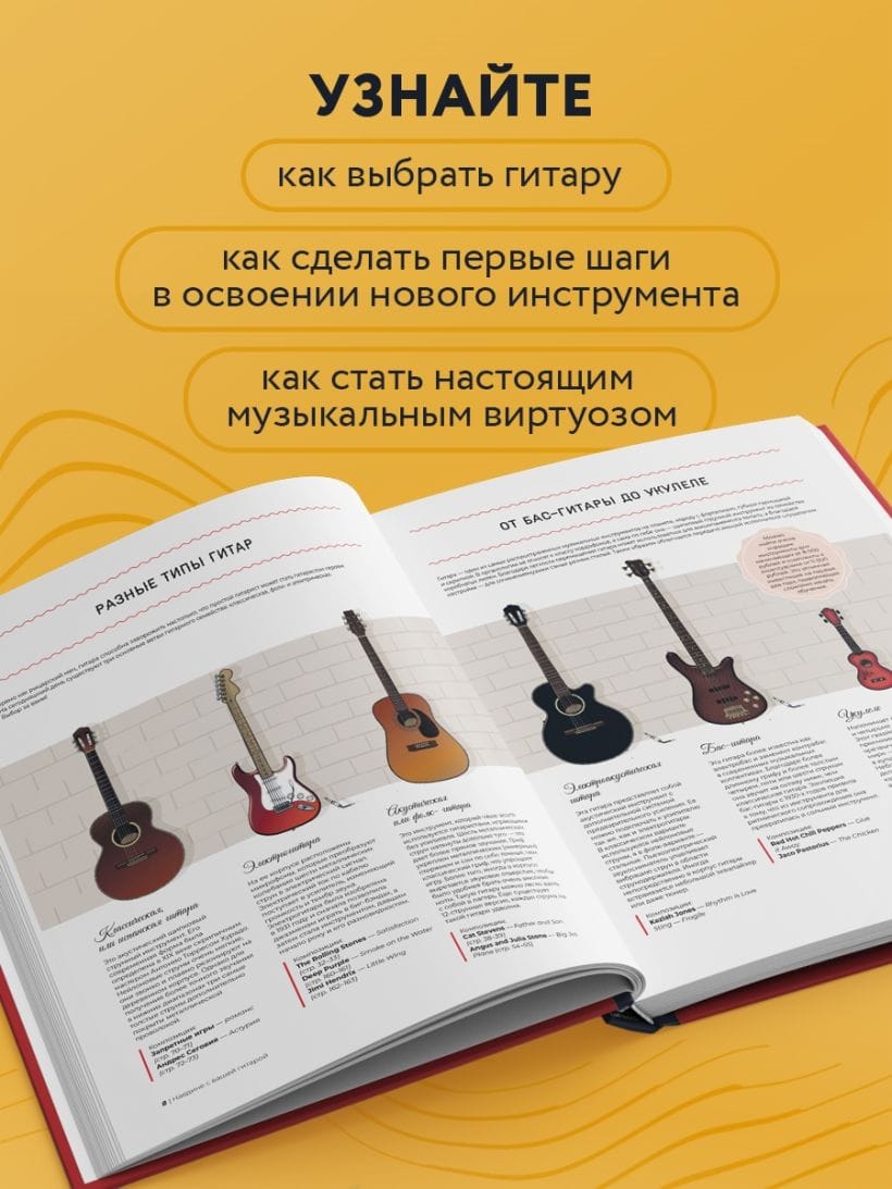 Это большое иллюстрированное издание станет идеальным подарком для каждого, у кого есть гитара (даже если вы считаете себя экспертом!), и, конечно же, для тех, кто только собирается подступиться к новому хобби. Книга написана опытным гитаристом Эви Муном, выступающим по всему миру с известными французскими музыкантами Irma и Дженнифер Бартоли.