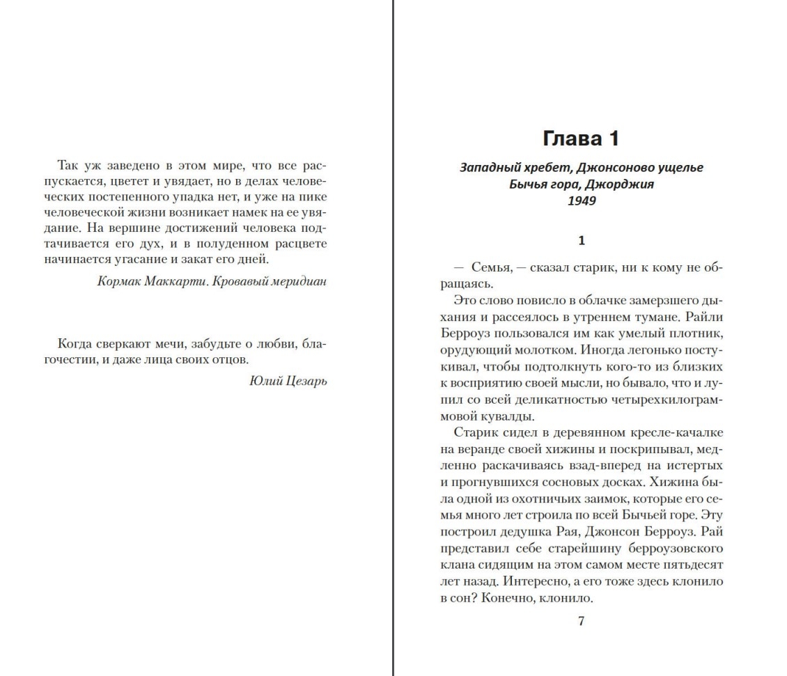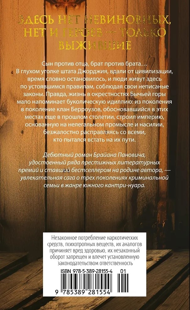 Бычья гора в глухом углу штата Северная Джорджия — вотчина жестокого клана Берроузов, члены которого занимаются незаконными промыслами. Начав с производства самогона во времена сухого закона, семья постоянно расширяет бизнес и становится ведущим игроком на нелегальном рынке юга США. Но Клейтон Берроуз, младший из трех братьев — наследников криминальной империи, становится местным шерифом, тем самым противопоставив себя семье. Вооруженный нейтралитет с братьями, который удается сохранять шерифу, нарушают интриги агента ФБР, прибывшего в Джорджию явно не только в рамках служебного долга. Динамичный, атмосферный, захватывающий роман о трех поколениях семьи Берроуз повествует о соперничестве, преданности семье, предательстве и мести.
