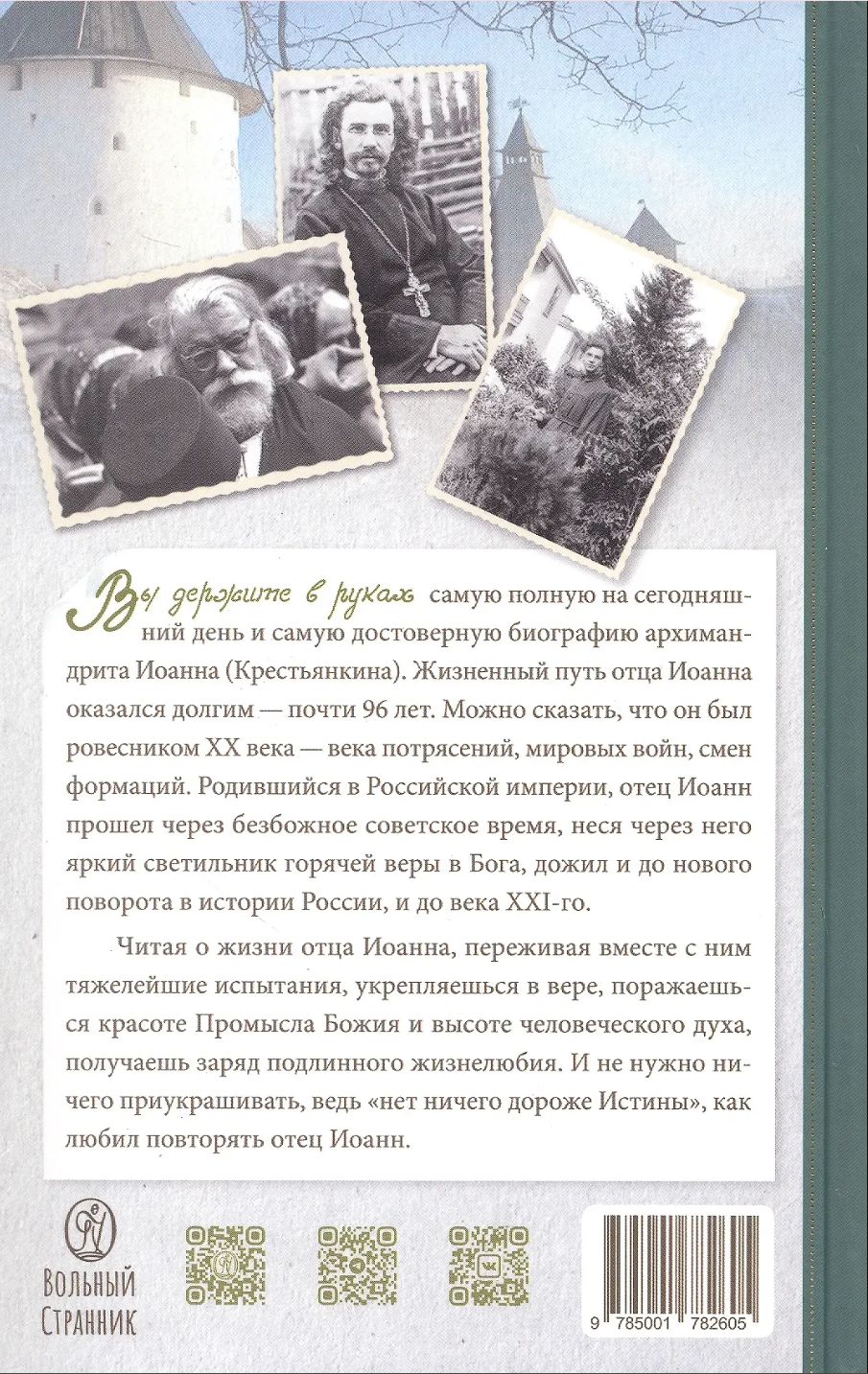 Отец Иоанн (Крестьянкин) (1910–2006) — исповедник веры, всероссийский старец, подвижник, стяжавший непрестанную молитву, получивший от Бога дар прозорливости, исцеления, а главное – утешения людей. В отце Иоанне сияла Любовь, видимая всем окружающим, а ведь Любовь – это венец совершенства. Совершенство стало результатом подвижнического жизненного пути, увенчавшегося праведной кончиной в день новомучеников и исповедников Российских, к которым принадлежит и сам отец Иоанн.