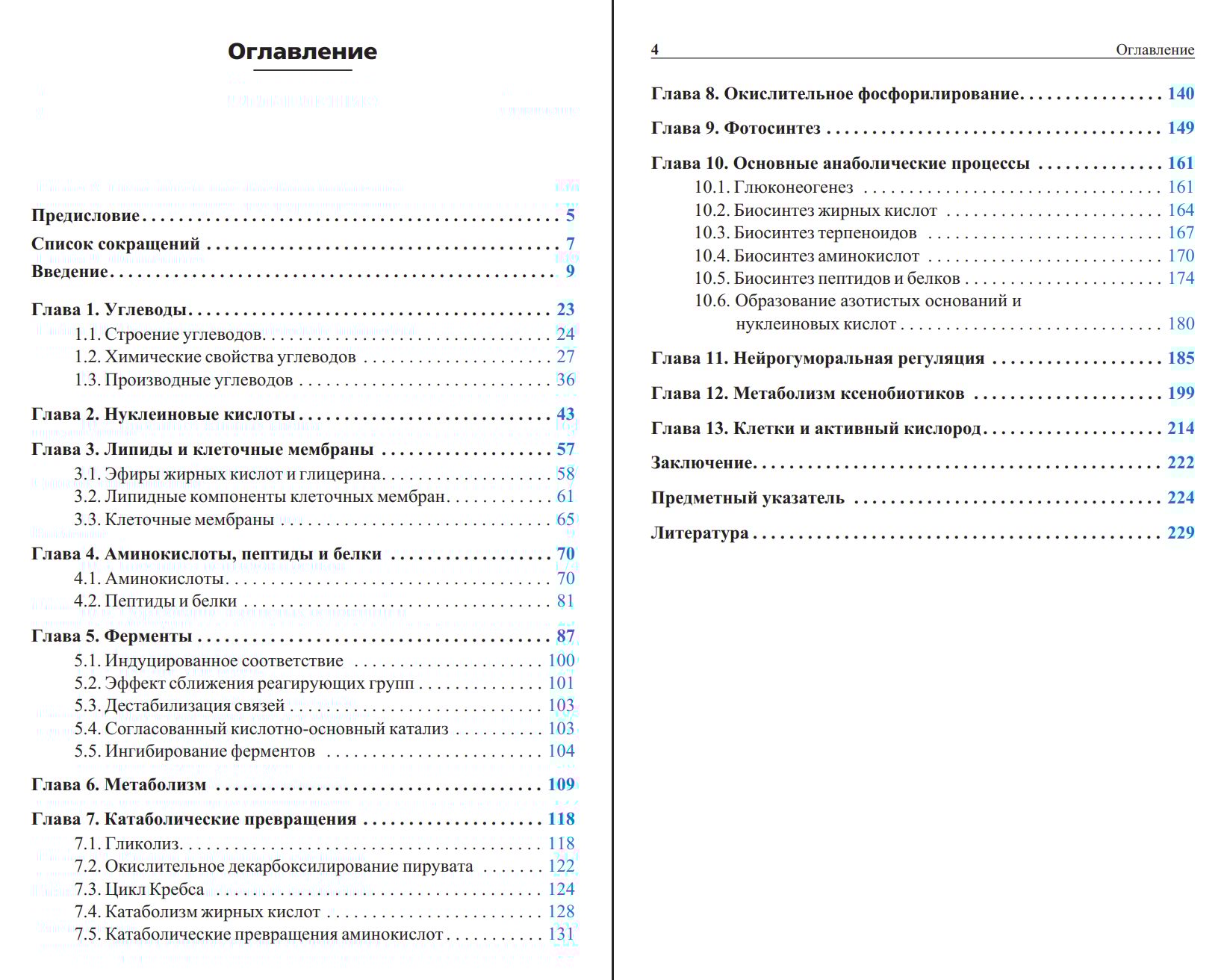 Рассмотрены основные биополимеры и их составляющие, принципы главных катаболических и анаболических превращений, пути их регуляции, механизмы взаимодействия некоторых биологически активных соединений с биохимическими мишенями, различные направления метаболизма ксенобиотиков и роль активного кислорода в живых системах.