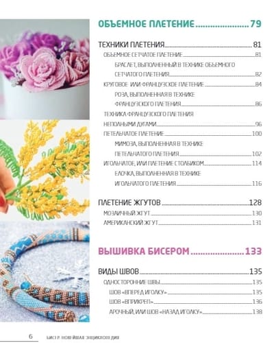 Лучшие мастера представили вашему вниманию подробные описания техники плоского и объемного плетения, вышивки бисером, ткачества из бисера, вязания с бисером, сочетание бисера с другими материалами, пошаговые инструкции по каждой из них, мастер-классы по созданию авторских работ, на примере которых можно закрепить полученные навыки, чтобы перейти к созданию собственных проектов. Это красивое увлекательное хобби останется с вами на всю жизнь!