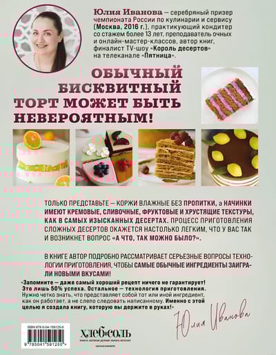 Обычный бисквитный торт может быть невероятным! Только представьте — коржи влажные без пропитки, а начинки имеют кремовые, сливочные, фруктовые и хрустящие текстуры, как в самых изысканных десертах — процесс приготовления сложных десертов окажется настолько легким, что у вас так и возникнет вопрос «А что, так можно было?». В книге автор не только дает подробные рецепты восхитительных тортов, но и делится глубокими знаниями по теории и технологии их приготовления, чтобы самые обычные ингредиенты заиграли новыми вкусами!