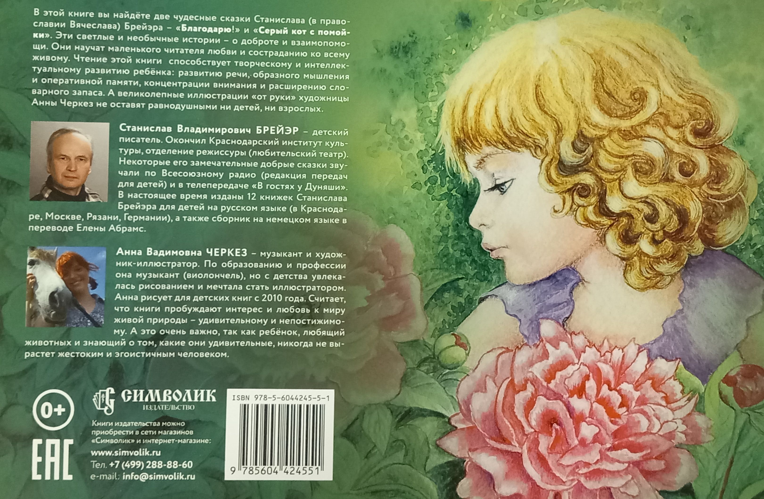 В красочно иллюстрированную книгу включены две сказки Станислава Брейэра – «Благодарю!» и «Серый кот с помойки». Они научат маленького читателя любви и состраданию ко всему живому. Чтение этой книги способствует творческому и интеллектуальному развитию ребёнка: развитию речи, образного мышления и оперативной памяти, концентрации внимания и расширению словарного запаса. А великолепные иллюстрации от руки художницы Анны Черкез не оставят равнодушными ни детей, ни взрослых.