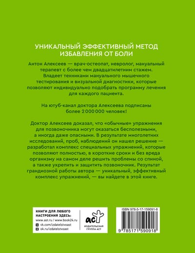 Перед вами книга опытного врача-кинезиолога, мануального терапевта с более чем десятилетним стажем врачебной деятельности. Доктор Алексеев пришел к парадоксальному выводу, что «обычные» упражнения для позвоночника могут оказаться бесполезными, а иногда даже опасными при некоторых заболеваниях.