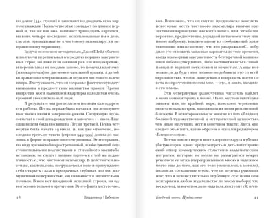«Бледный огонь» (1962) — самое необычное по форме произведение Владимира Набокова, состоящее из эпиграфа, одноименной поэмы в 999 строк, предисловия к ней, обширного комментария и указателя. Обстоятельства сочинения Джоном Шейдом гениальной поэмы в последние недели его жизни преломляются в фантастической призме комментария, составленного загадочным и одиноким поклонником американского поэта Чарльзом Кинботом, наполняющим мир «Бледного огня» собственным творческим опытом, воспоминаниями и страхами.