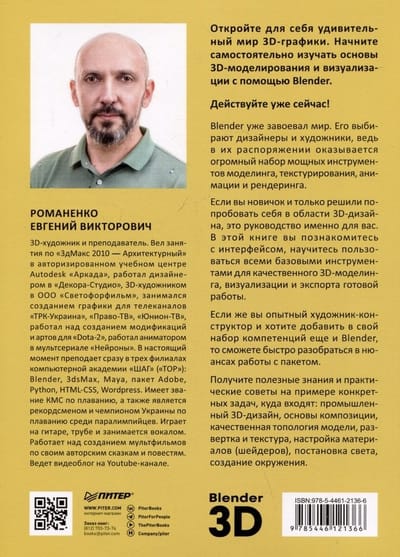 Откройте для себя удивительный мир 3д-графики. Начните самостоятельно изучать основы 3д-моделирования и визуализации с помощью Blender. Действуйте уже сейчас! Blender уже завоевал мир. Его выбирают дизайнеры и художники, ведь в их распоряжении оказывается огромный набор мощных инструментов моделинга, текстурирования, анимации и рендеринга. Если вы новичок и только решили попробовать себя в области 3д-дизайна, это руководство именно для вас. В этой книге вы познакомитесь с интерфейсом, научитесь пользоваться всеми базовыми инструментами для качественного 3д-моделинга, визуализации и экспорта готовой работы. Если же вы опытный художник-конструктор и хотите добавить в свой набор компетенций ещё и Blender, то сможете быстро разобраться в нюансах работы с пакетом. Получите полезные знания и практические советы на примере конкретных задач, куда входят: промышленный 3D-дизайн, основы композиции, качественная топология модели, развертка и текстура, настройка материалов (шейдеров), постановка света, создание окружения.