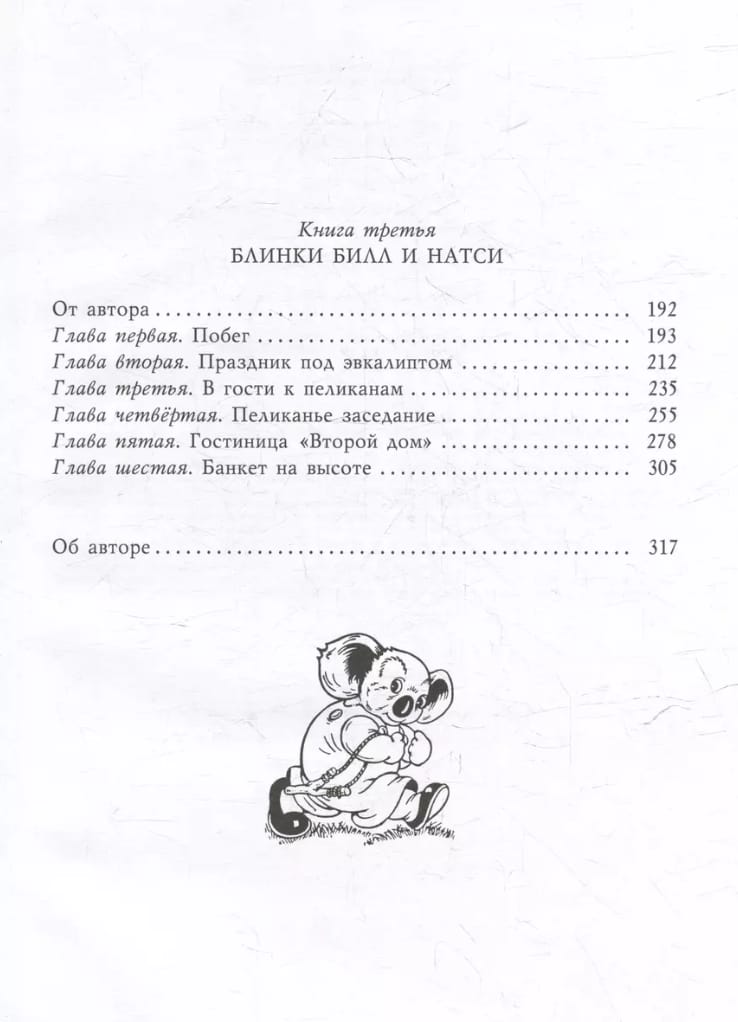 В настоящее издание «Блинки Билл. Приключения непослушного коалёнка» вошли три книги австралийской писательницы и художницы Дороти Уолл (1894–1942) о похождениях сумчатого медвежонка. Они понравятся любителям приключений, а также всем ребятам, кому интересна уникальная флора и фауна Зелёного континента.