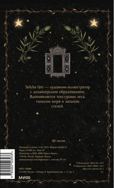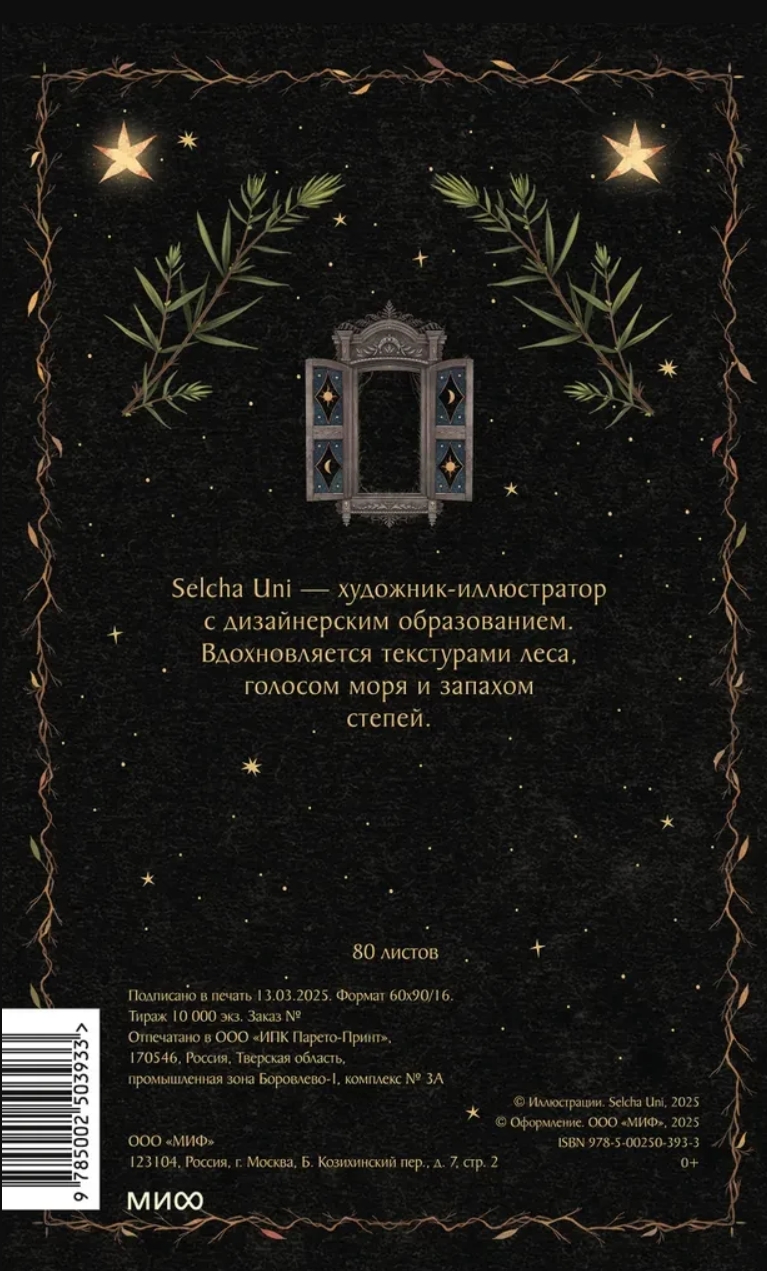Блокнот в стиле cosy darkness в твердом переплете на плотной бумаге. Природные сказочные мотивы и волшебство от популярного иллюстратора Selcha Uni. Внутри — 160 страниц в точку с рисованными декоративными элементами на полях.