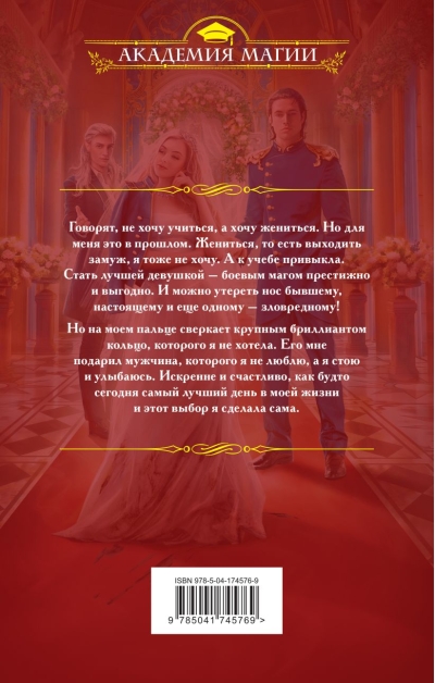 Говорят, не хочу учиться, а хочу жениться. Но для меня это в прошлом. Жениться, то есть выходить замуж, я тоже не хочу. А к учебе привыкла. Стать лучшей девушкой — боевым магом престижно и выгодно. И можно утереть нос бывшему, настоящему и еще одному — зловредному! Но на моем пальце сверкает крупным бриллиантом кольцо, которого я не хотела. Его мне подарил мужчина, которого я не люблю, а я стою и улыбаюсь. Искренне и счастливо, как будто сегодня самый лучший день в моей жизни и этот выбор я сделала сама.
