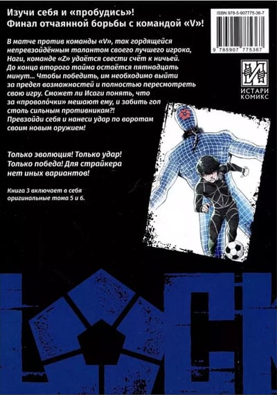 Изучи себя и «пробудись»! Финал отчаянной борьбы с командой «V»! В матче против команды «V», так гордящейся непревзойдённым талантом своего лучшего игрока, Наги, команде «Z» удаётся свести счёт к ничьей. До конца второго тайма остаётся пятнадцать минут… Чтобы победить, им необходимо выйти за предел возможностей и полностью пересмотреть свою игру. Сможет ли Исаги понять, что за «проволóчки» мешают ему, и забить гол столь сильным противникам?! Превзойди себя и нанеси удар по воротам своим новым оружием! Только эволюция! Только удар! Только победа! Для страйкера нет иных вариантов!