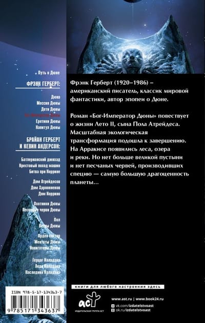 Роман "Бог-Император Дюны" повествует о жизни Лето II, сына Пола Атрейдеса.