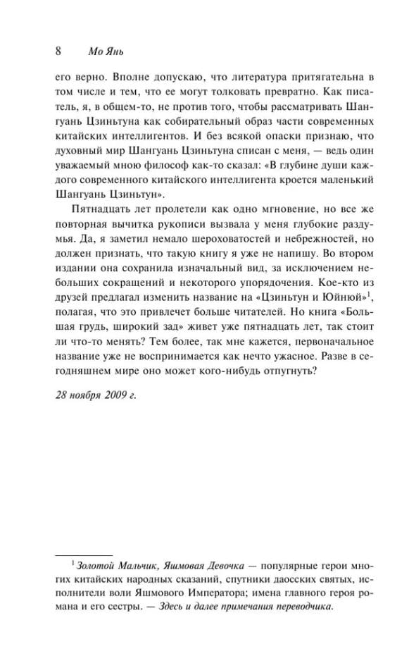 Мо Янь является одним из самых известных современных писателей на китайском языке. Он был удостоен Нобелевской премии по литературе в 2012 году, что сделало его первым писателем материкового Китая, получившим эту награду. В настоящее время Мо Янь занимает пост заместителя председателя Союза китайских писателей.